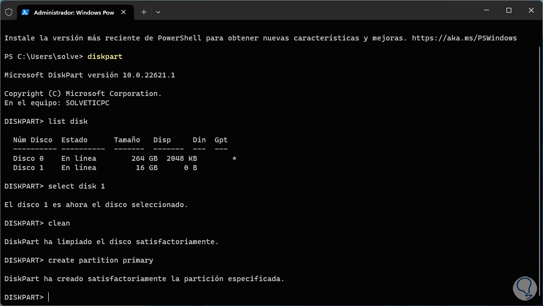 3 Formatear disco duro externo Windows 11 desde Terminal
