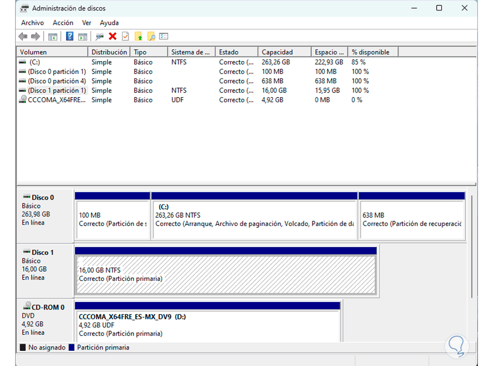 1 Formatear disco duro externo Windows 11 desde Administración de discos