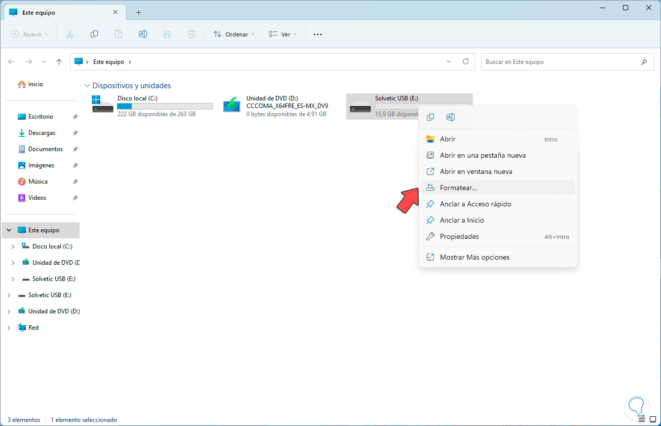 2 Formatear disco duro externo Windows 11 desde Explorador de archivos