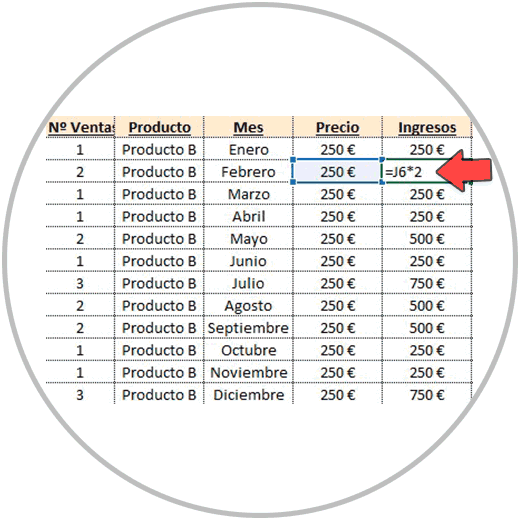 Si queremos cambiar una celda referenciada en una fórmula, tendremos que hacer doble clic sobre la celda que contiene la fórmula, o pulsar la tecla “F2”. Se resaltarán entonces las celdas referenciadas en la fórmula, que, haciendo uso del ratón, podremos modificar y cambiar a otra celda.