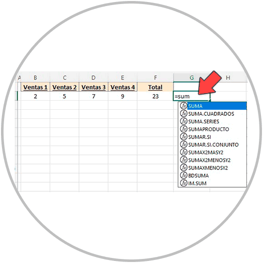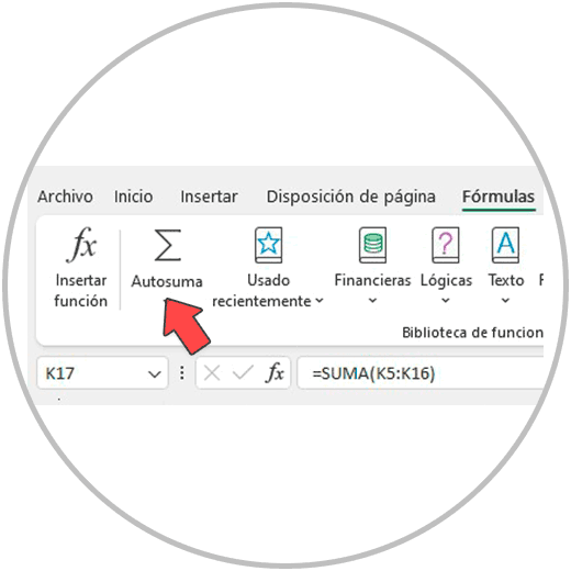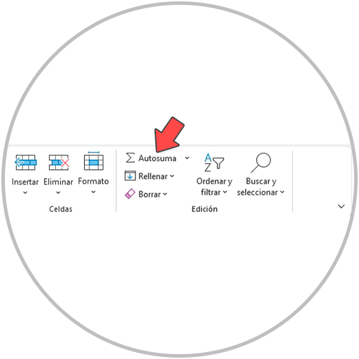 Otra opción que podemos usar para realizar la función de suma, es usar “Autosuma" desde el menú "Inicio", en la cinta de opciones.