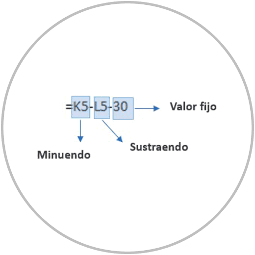 En estos ejemplos, vemos fórmulas sencillas para entender cómo es una resta, donde tenemos un minuendo, que es el primer valor o celda referenciada de la fórmula, y un sustraendo, que es el valor o celda referenciada que resta. Pero debemos tener en cuenta que una operación de resta, puede contener más elementos (sustraendos) que resten al primer valor (minuendo)