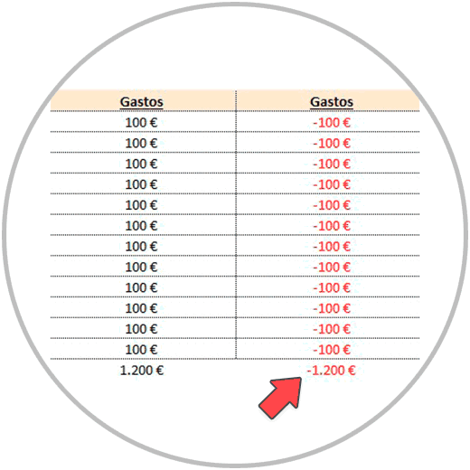 Ahora veremos como en la columna de la derecha, se han pegado los valores en negativo. Y que podemos usar ahora la función de "SUMA"