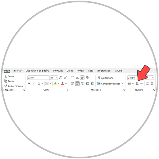 También podríamos usar la cinta de opciones, y en concreto el menú de inicio para poder usar la ventana desplegable que nos permite elegir un formato determinado, o podríamos usar la opción visible que vamos a ver en el apartado de formato, dentro del menú de inicio, como en la imagen:
