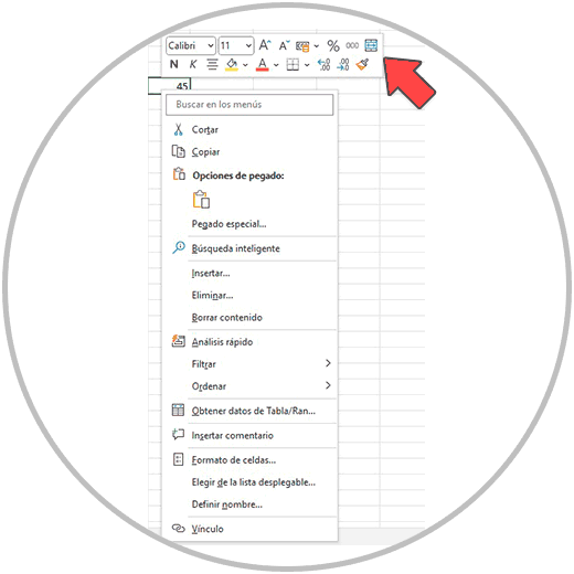 - Haciendo clic en la celda donde queremos cambiar el formato, con el botón derecho de nuestro ratón o mouse. Veremos entonces un menú rápido en la parte superior de la ventana, desde donde podremos cambiar el formato de celda, y desde donde además podremos configurar el “look & feel” de la celda eligiendo un color de fondo, o estableciendo un formato para las líneas de la celda.