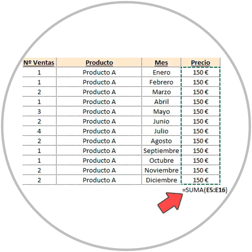 Siguiendo con el ejemplo, si quisiéramos hacer un sumatorio de todas las ventas de un producto, a lo largo del año, ahora si podríamos usar la función de suma porque son datos que se recogen en la misma columna. Al llevar un orden y organización de datos en columnas, podemos usar fácilmente una función, en este caso de suma, para obtener el resultados esperado.