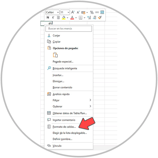 - Desde esta ventana que se abre al hacer clic en el botón derecho de nuestro ratón, también veremos en el menú la opción de “Formato de celdas”.