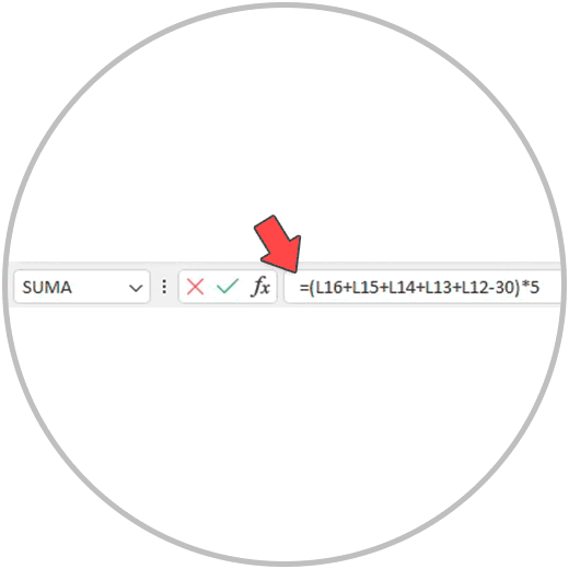 En la imagen abajo, ponemos de ejemplo una fórmula en la cual queremos que se realice la suma de celdas primero, y que después realice la multiplicación.