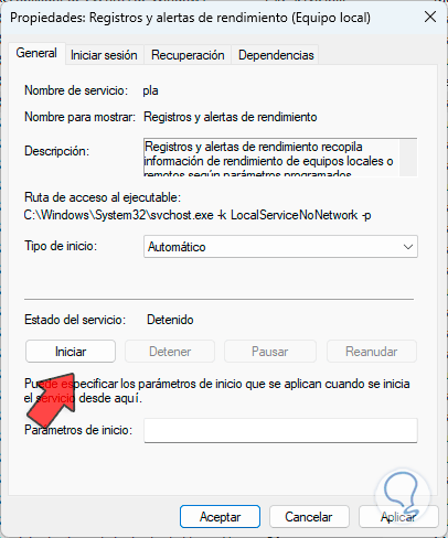 Allí ubicamos el servicio llamado “Registros y alertas de rendimiento”: