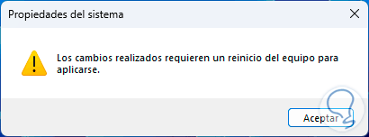 Al salir de la ventana será posible reiniciar el sistema si algo fue modificado: