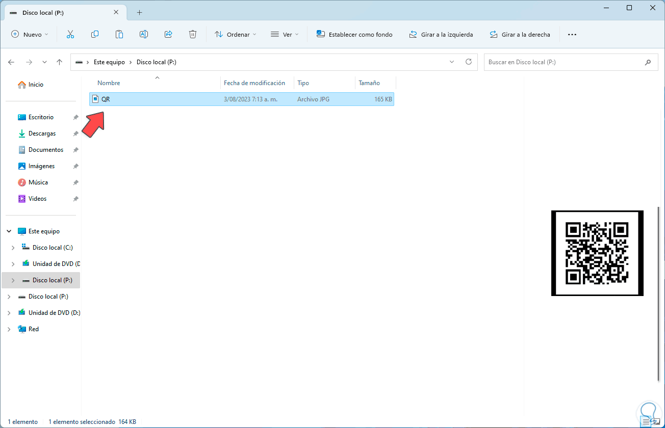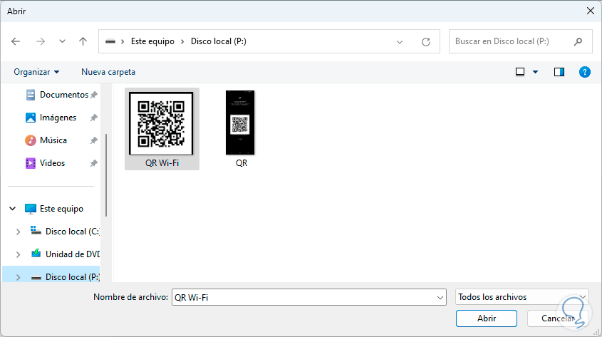 Es posible que no dispongamos de cámara para realizar esto, en este caso Solvetic te aconseja tomar una foto al código QR del dispositivo y luego almacenarla localmente en el PC, abrimos el Explorador de archivos para validar la imagen del código QR de la red a usar: