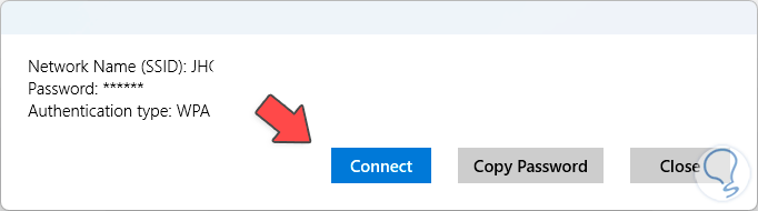 Al cargarse veremos que se despliega el nombre de la red con sus detalles. Damos clic en “Connect” y validamos que se ha establecido la conexión a esa red Wi-Fi dando clic en el icono de red en la barra de tareas: