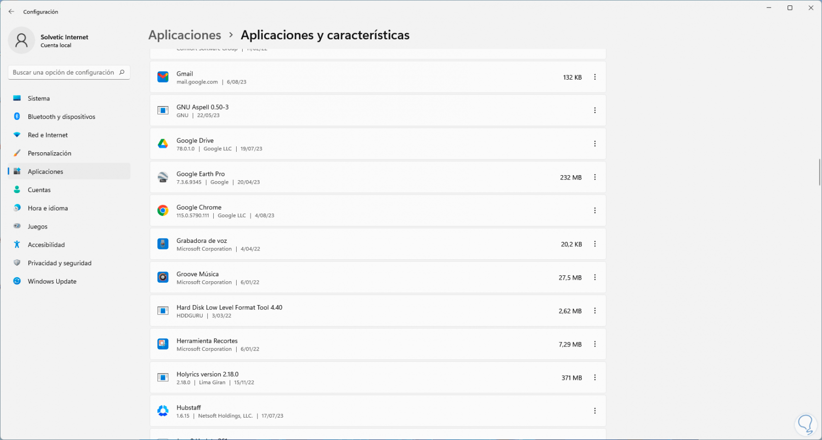 Si no deseamos más que Gmail este en el PC como una aplicación podemos desinstalarla, para ello iremos a la ruta: