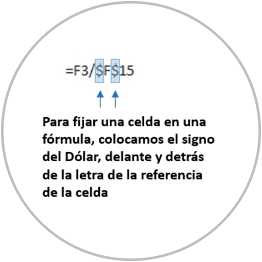 Colocaremos el signo del Dólar delante y detrás de la letra de la celda que queremos dejar como constante, que en el ejemplo será la celda “F15”.