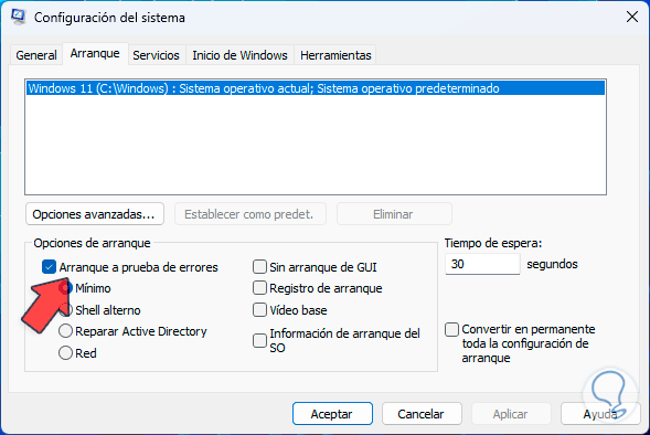 Vamos a la pestaña “Arranque” y veremos activa la casilla “Arranque a prueba de errores”: