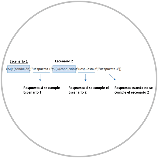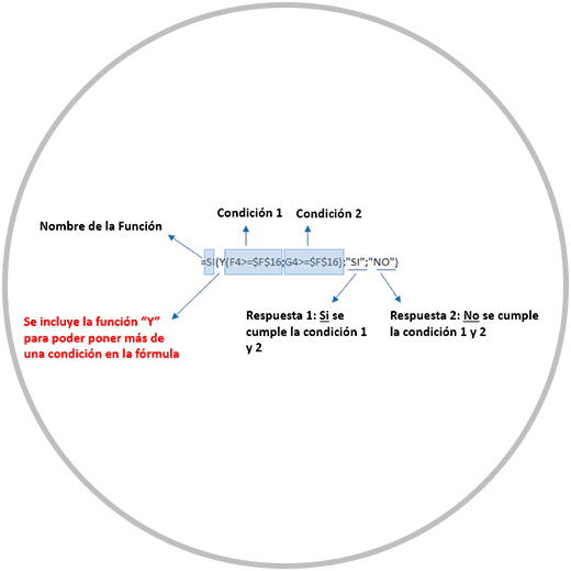 - Usando dentro de la fórmula condicional, las funciones “Y” y “O”.