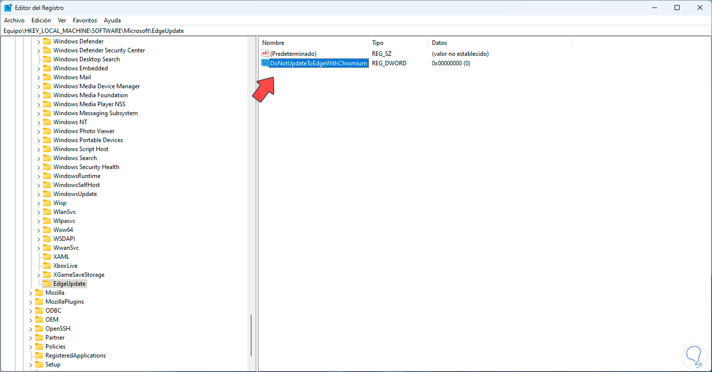 Este valor lo llamamos “DoNotUpdateToEdgeWithChromium”: