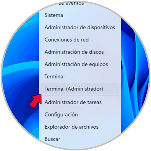 Ahora, abrimos la terminal como administrador desde Inicio: