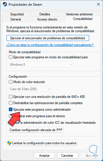 6 Reparar error Steam no abre ajustando la compatibilidad