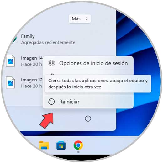 Una de las soluciones clásicas en el ámbito IT es “reiniciar”, para este caso de Steam no es la excepción ya que con un reinicio será posible hacer que los procesos se actualicen y con ello tener acceso a Steam, damos clic en el menú Inicio, luego pulsamos en el botón de apagado y damos clic en “Reiniciar”: