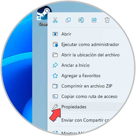 Otra causa del error en Steam es una mala configuración, una de estas son los permisos asignados, para descartar esto, damos clic derecho sobre el acceso directo de Steam y seleccionamos “Propiedades”: