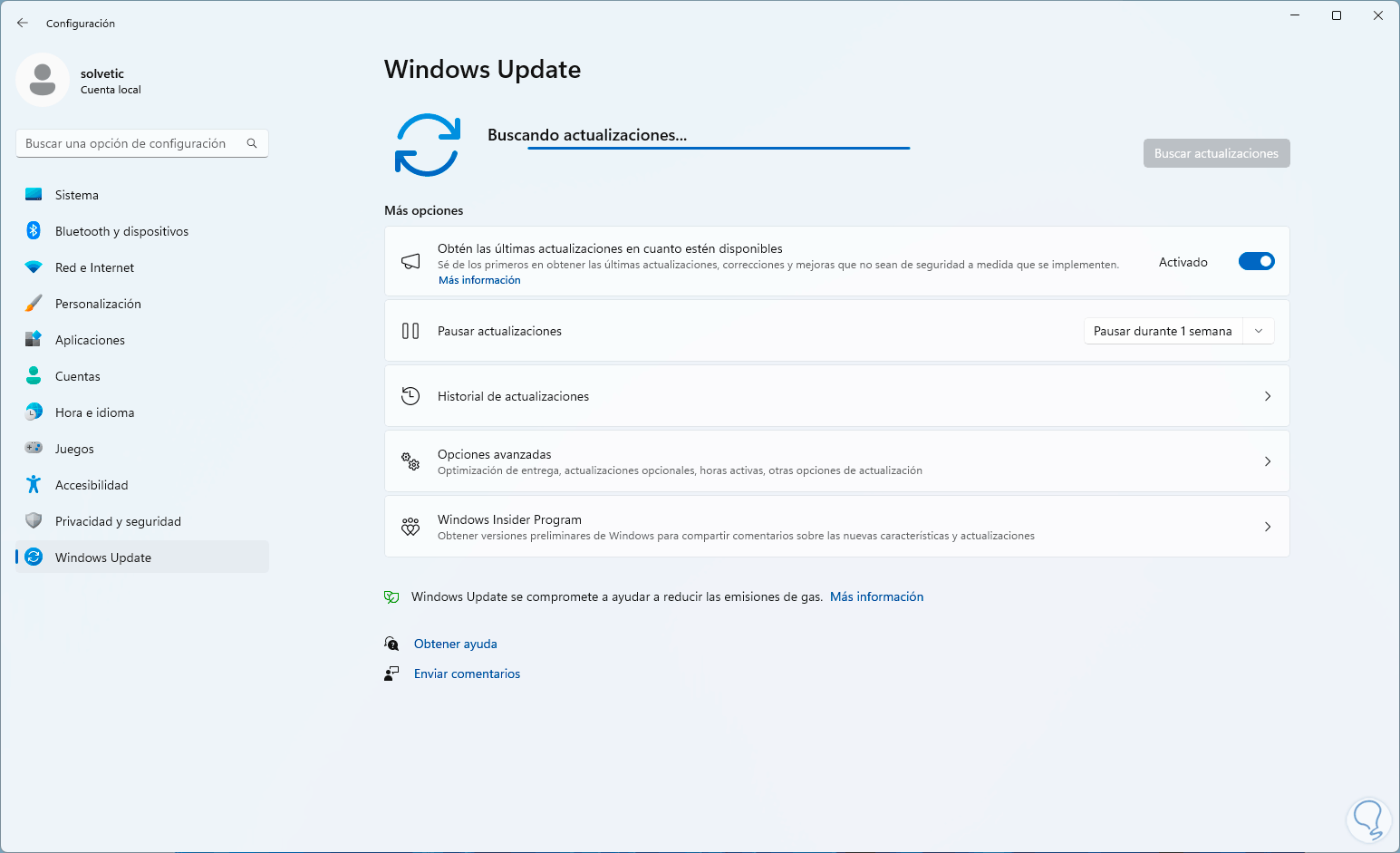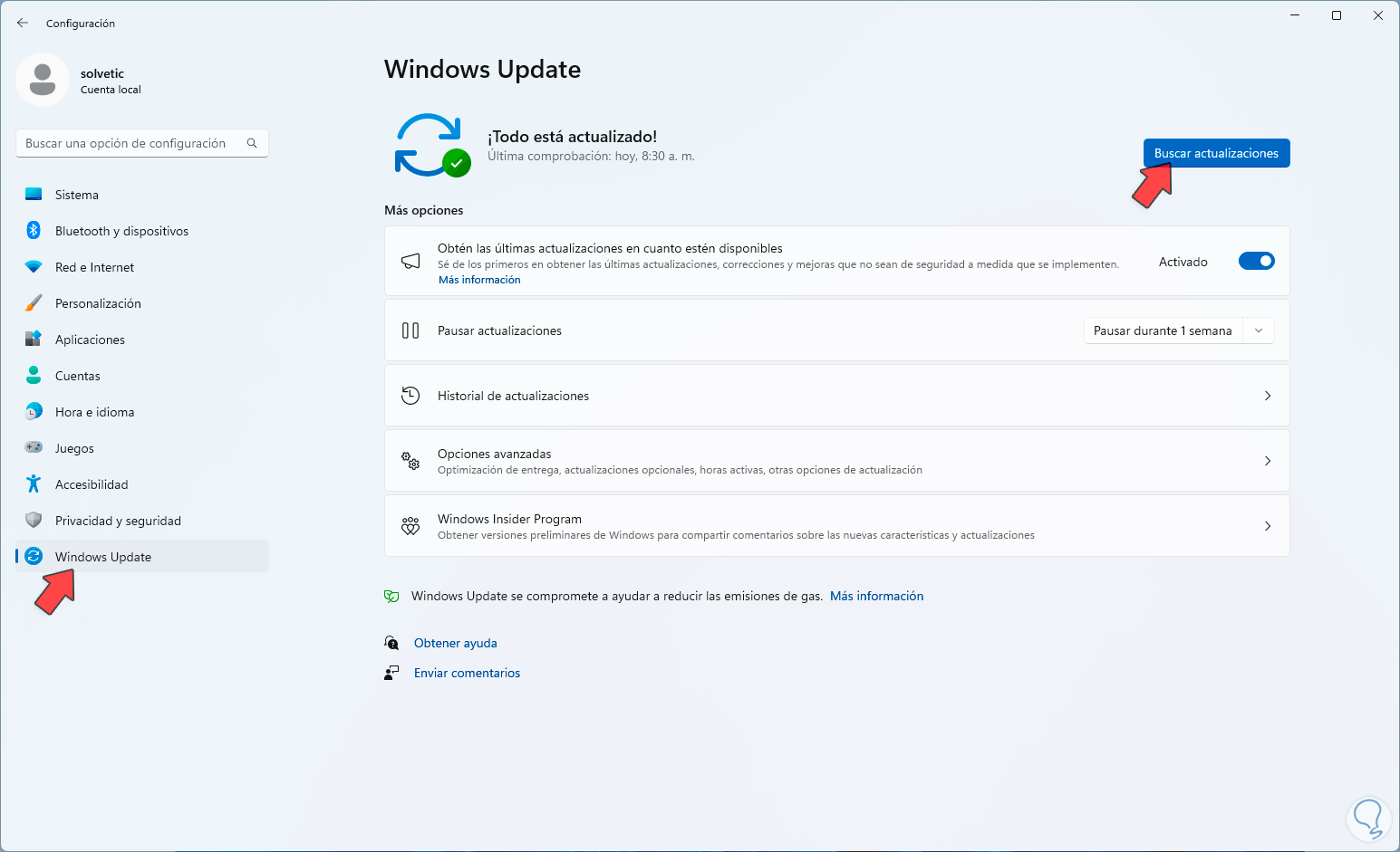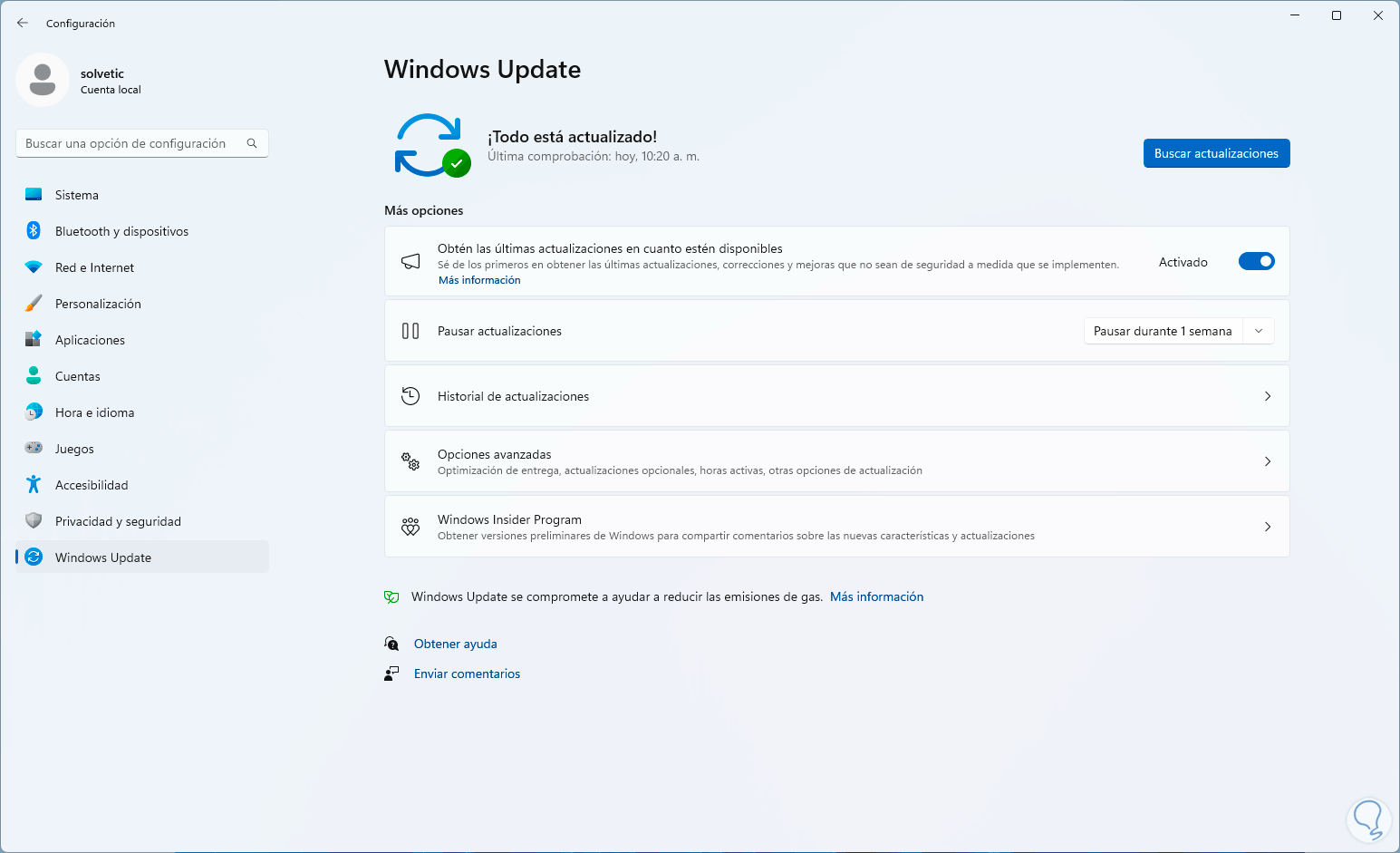Para revisar si existen actualizaciones vamos a la ruta “Inicio – Configuración – Windows Update”: