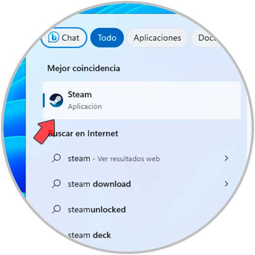 Para esto en el buscador ingresamos “steam”, en el resultado damos clic en Ejecutar como administrador”: