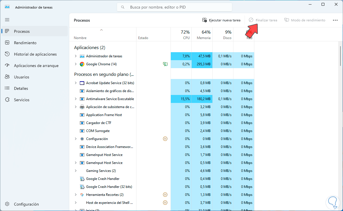 Con este método buscamos cerrar los procesos de Steam para “refrescarlos” y acceder nuevamente, para ello vamos a abrir el Administrador de tareas desde el menú Inicio: