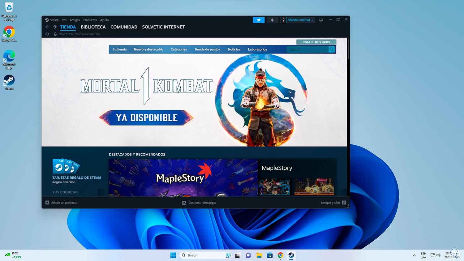 Al iniciar sesión, abrimos Steam para validar su uso:
