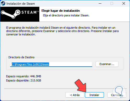 Damos clic en “Instalar Steam”, luego confirmamos de nuevo: