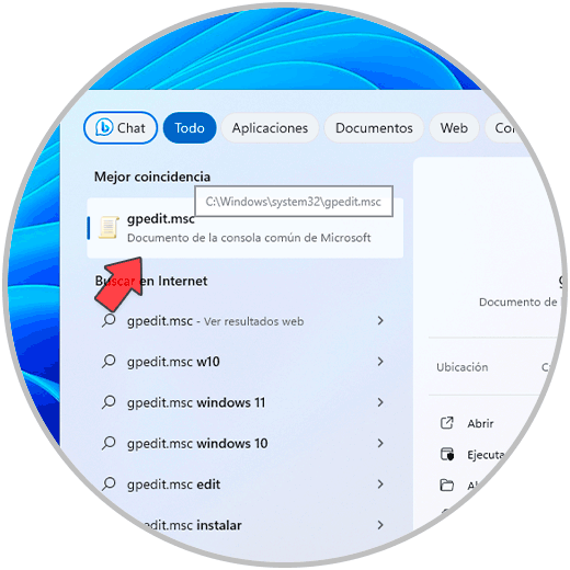 Para corregir esto, en el buscador ingresamos “gpedit.msc”:
