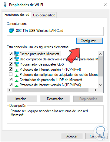 Ahora, vamos de nuevo a la pestaña “Funciones de red”. Allí damos clic en “Configurar”