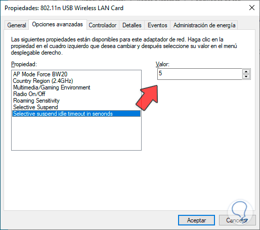 Al deshabilitar este campo, por lógica el ultimo valor “Selective suspend idle timeout in seconds” no será necesario modificarlo ya que allí se determina el tiempo, en segundos, en el cual se apagara el dispositivo: