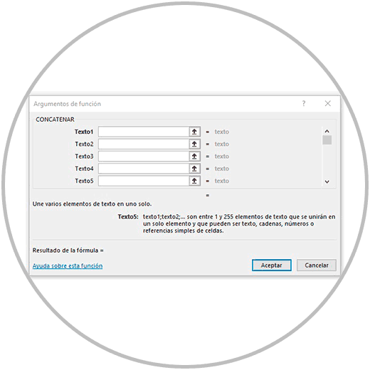 Así vamos introduciendo en cada caja la información que en este caso de ejemplo queremos concatenar.