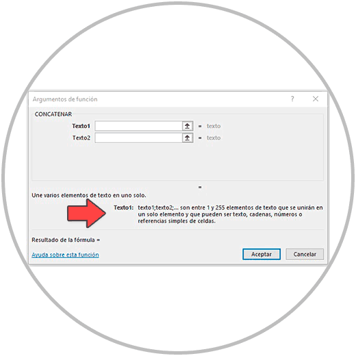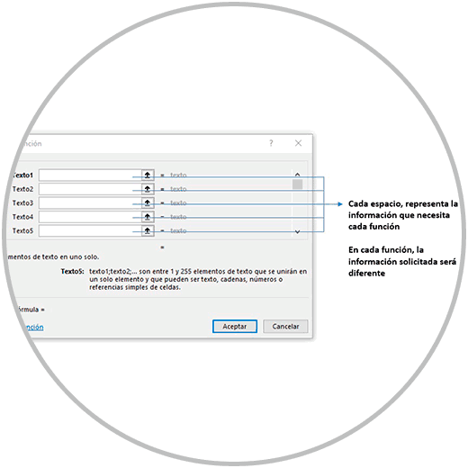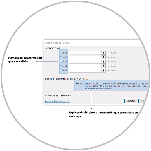 El asistente, nos va a ayudar además dándonos la explicación de la función que estamos usando, y el título que encontramos delante de cada caja, donde se indica en cada caso qué información debemos introducir.