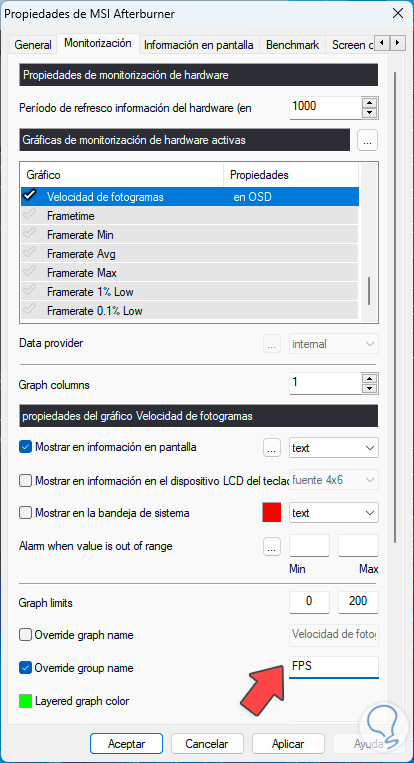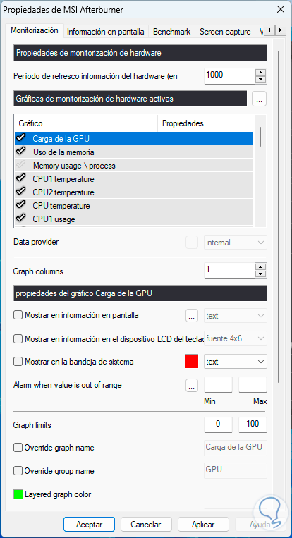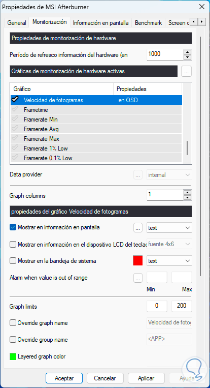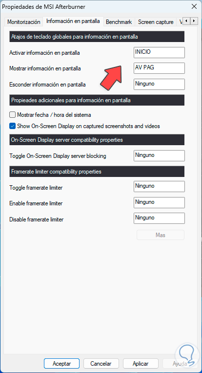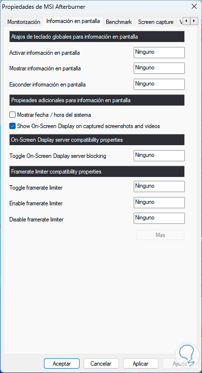 Ahora, vamos a la pestaña “Información en pantalla” para ver lo siguiente: