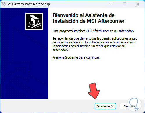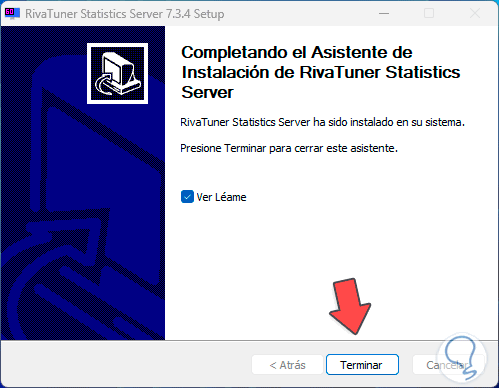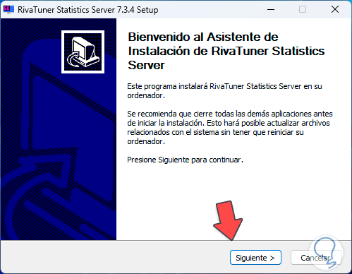 Al finalizar este proceso, se abrirá el asistente de instalación de RivaTuner:
