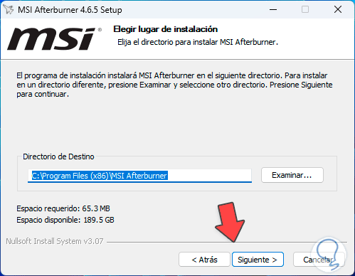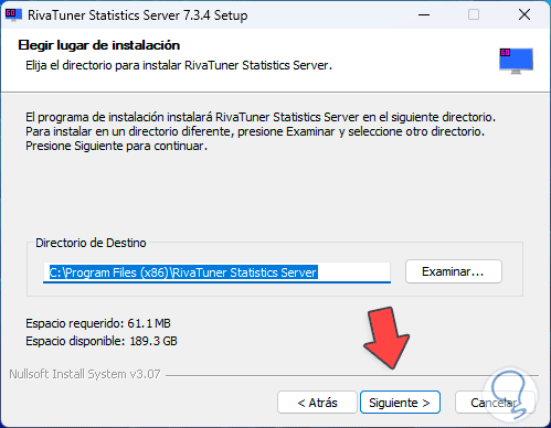 Damos clic en “Siguiente” para elegir el directorio de instalación: