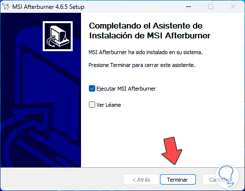 Damos clic en “Terminar” y con esto se habrá completado la instalación: