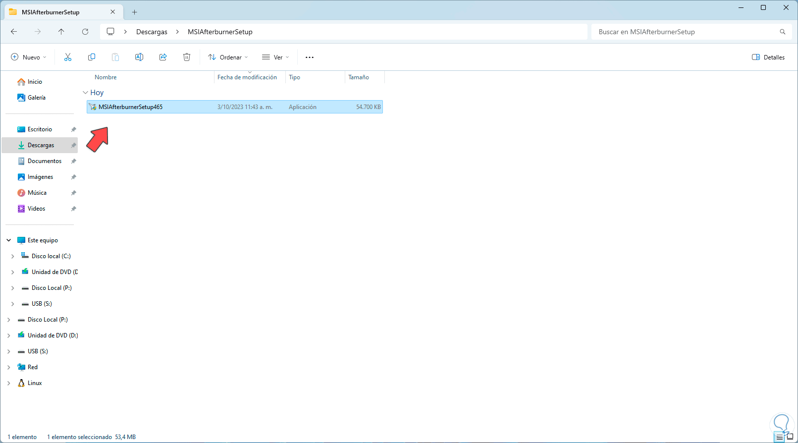 Damos clic en “Extraer” para proceder con la operación, luego accedemos a la carpeta y ejecutamos el archivo de instalación: