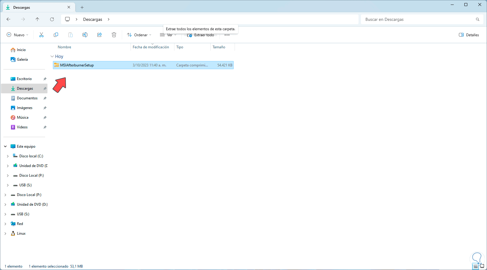 En la URL que te mencionamos, descarga la utilidad, luego, en la biblioteca Descargas, selecciona este archivo y da clic en “Extraer todo”:
