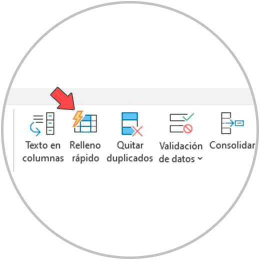 Dentro de la opción “Datos”, buscamos y hacemos clic en “Relleno Rápido”.