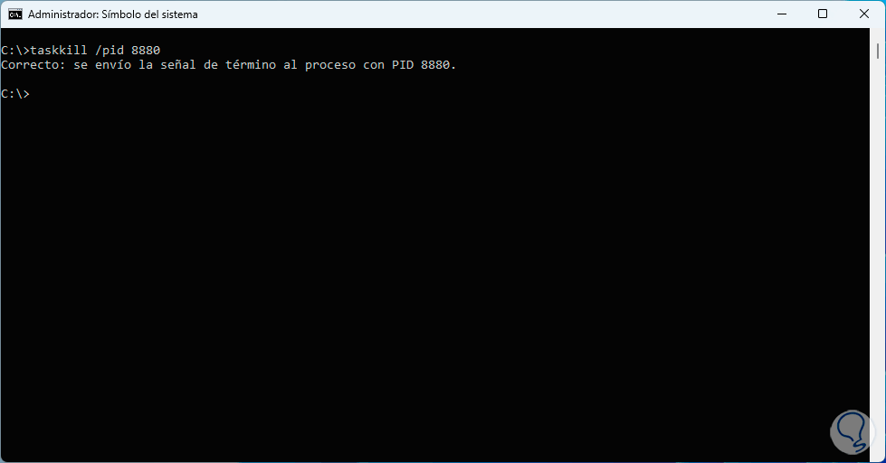 Ahora, para eliminar el virus asociado a este proceso, debemos ejecutar la siguiente sintaxis.