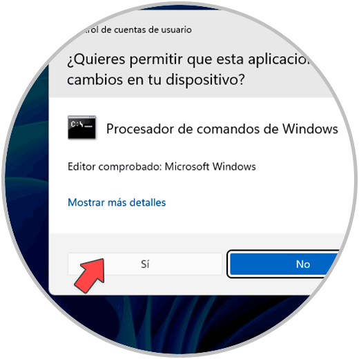 En la ventana de UAC damos clic en “Si” para permitir el acceso a la consola: