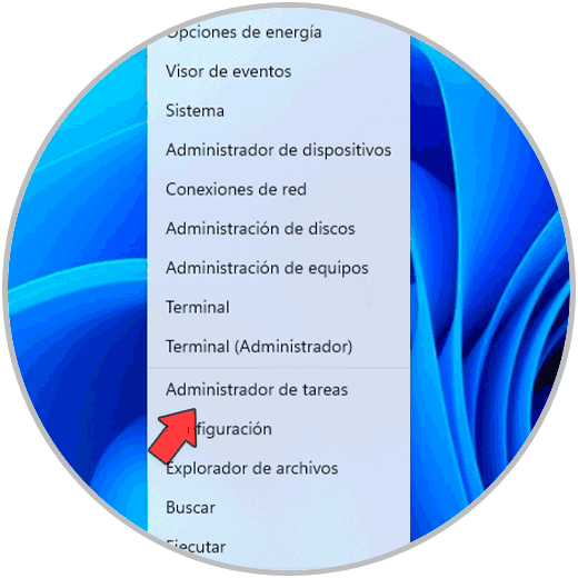 Nuestro primer método será a través del Administrador de tareas y es básicamente determinar algún proceso o servicio que no se reconozca como seguro, para usar este método, abrimos el Administrador de tareas desde el menú Inicio: