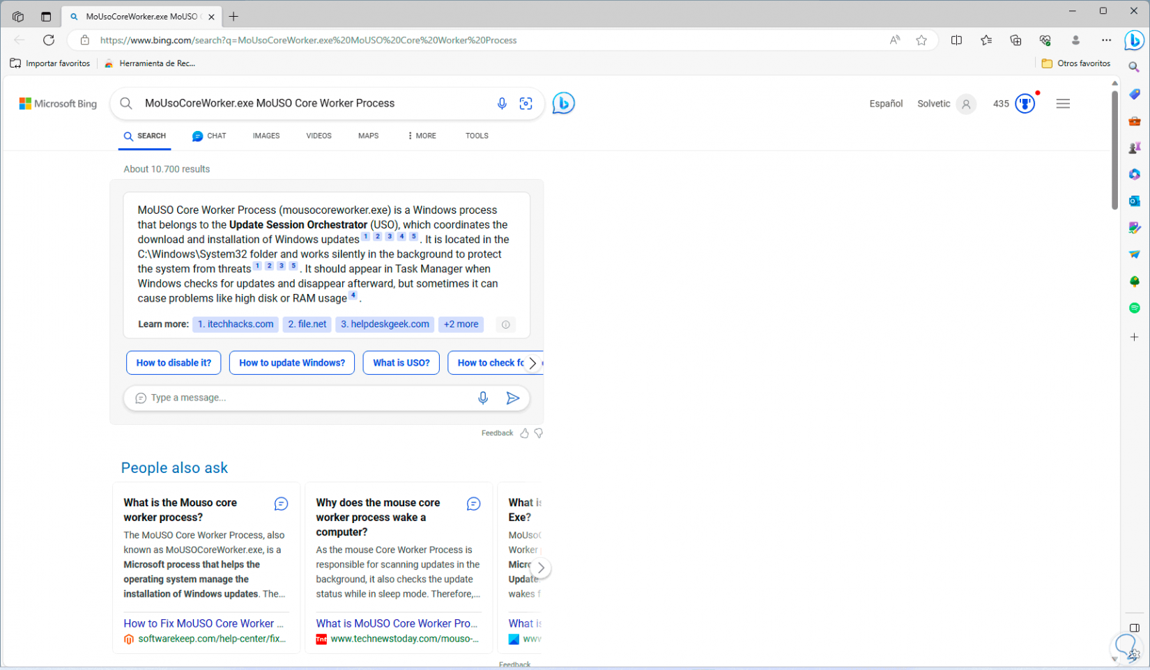 Esto abrirá el navegador por defecto con detalles acerca de este proceso, esto nos ayudara a tener idea sobre qué proceso es: