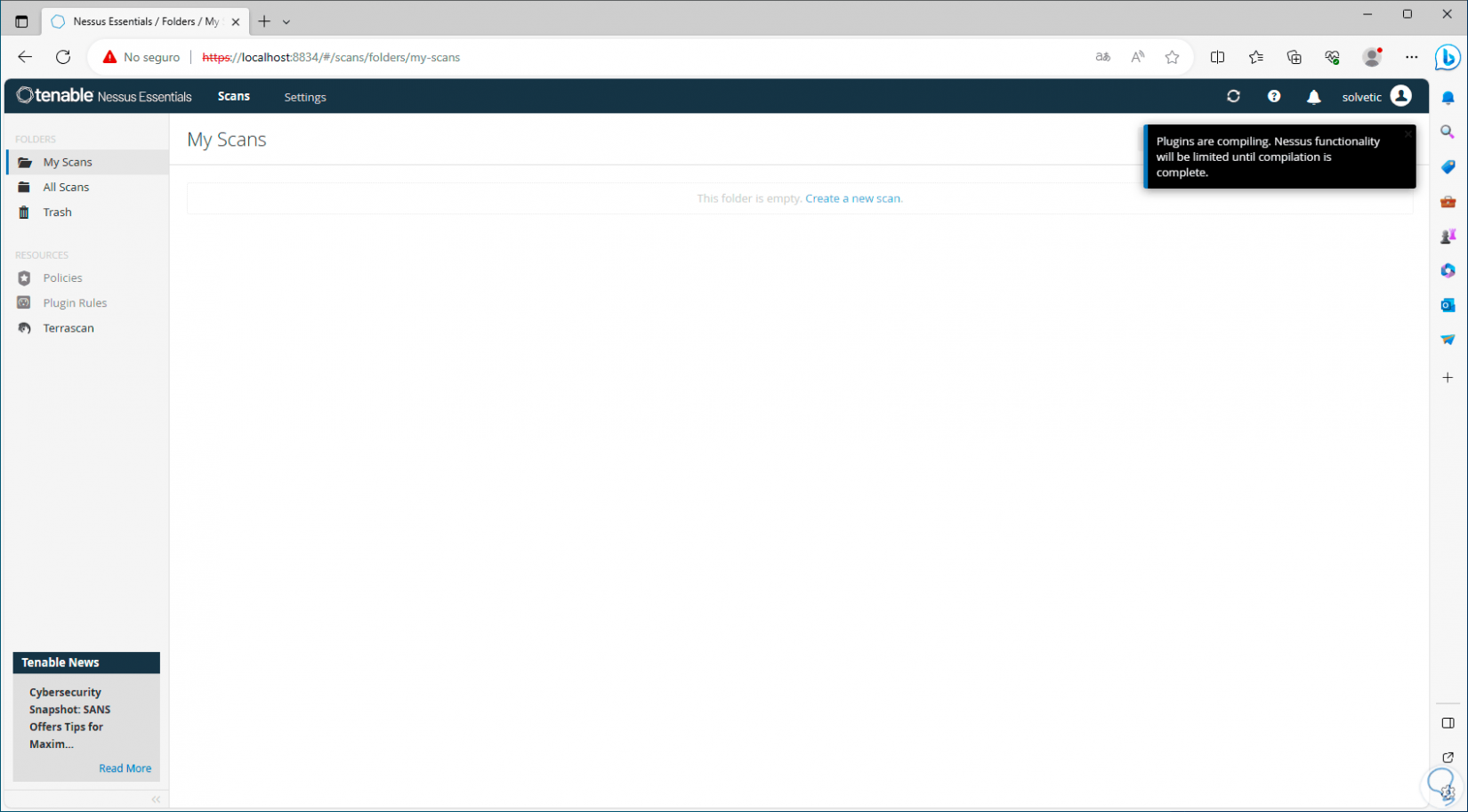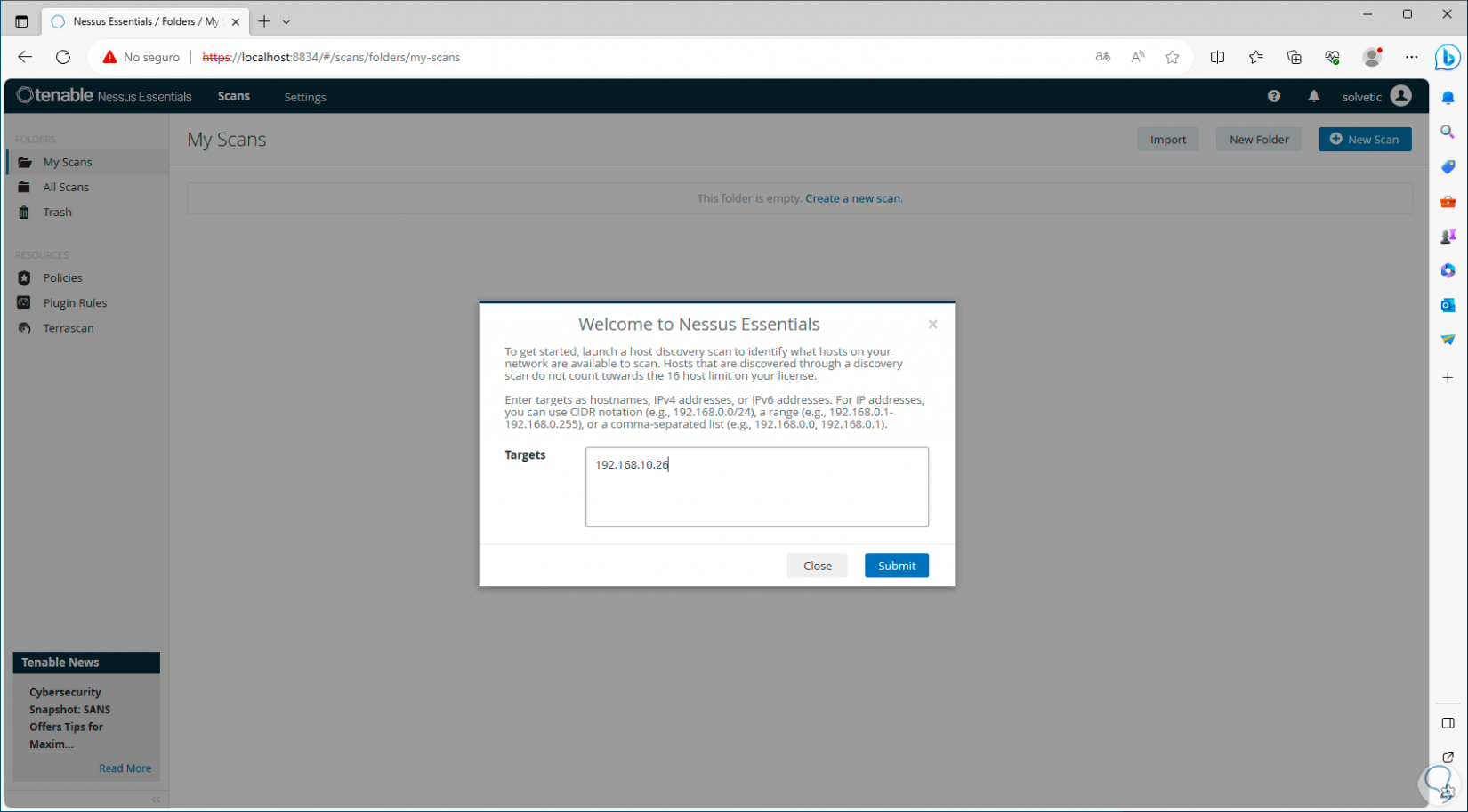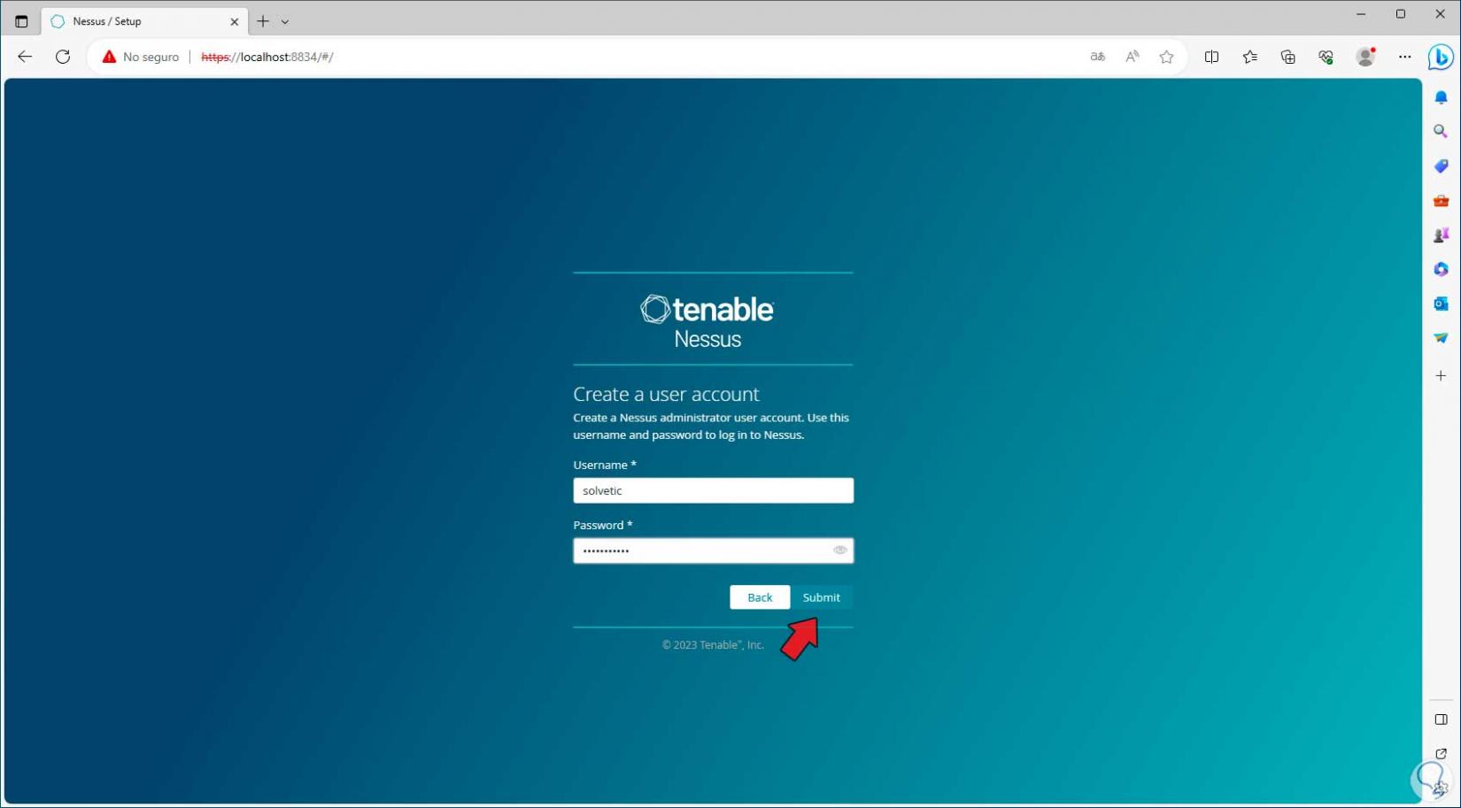 Se abrirá el navegador con la consola de Nessus: