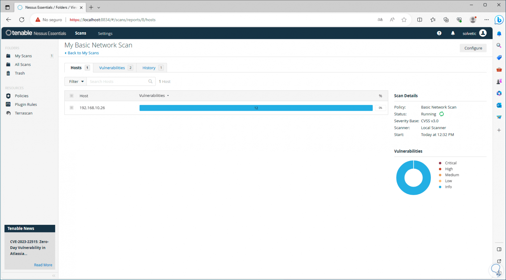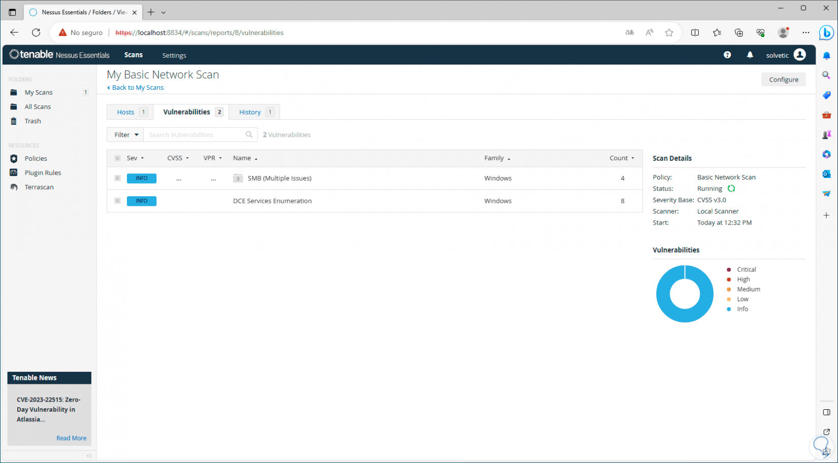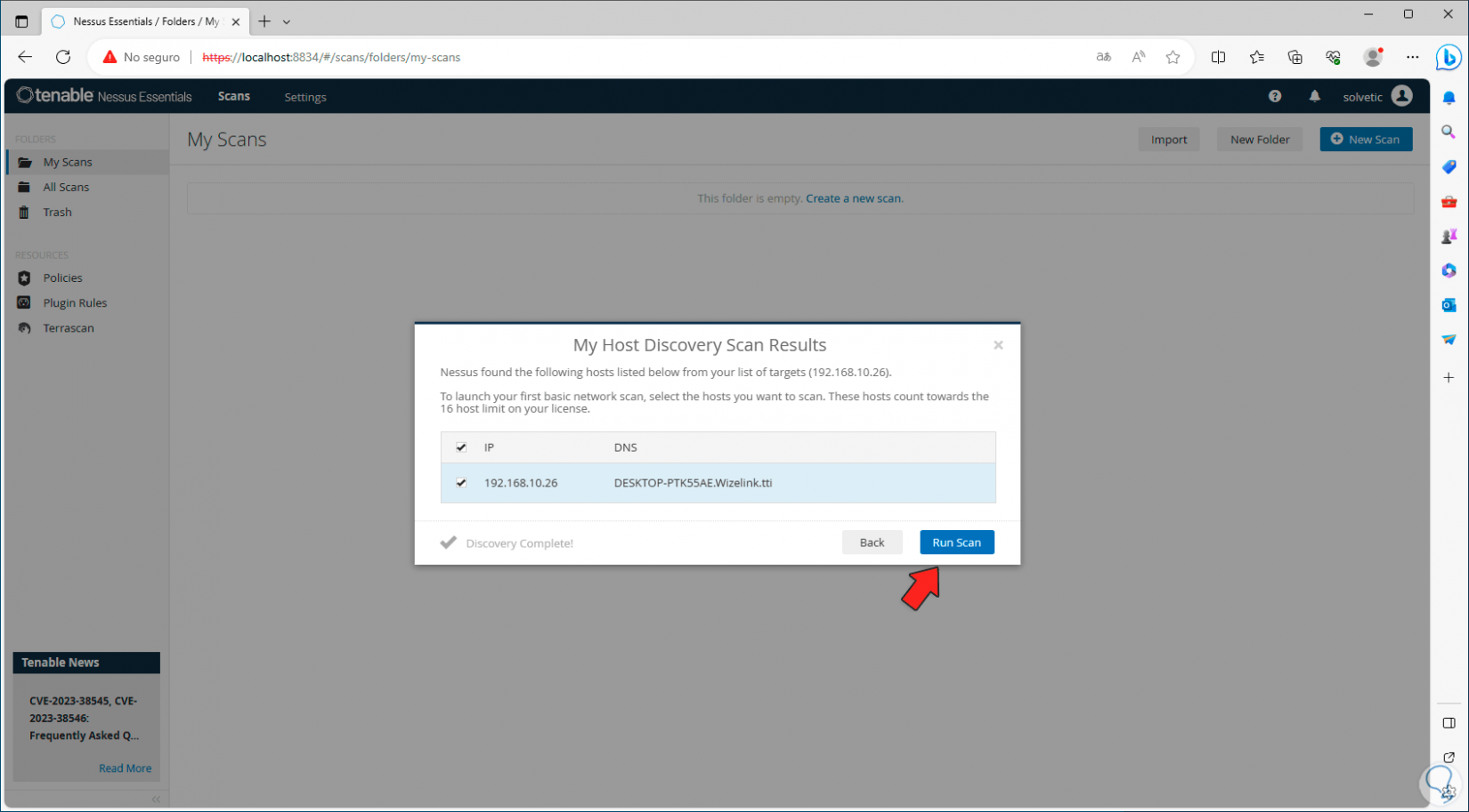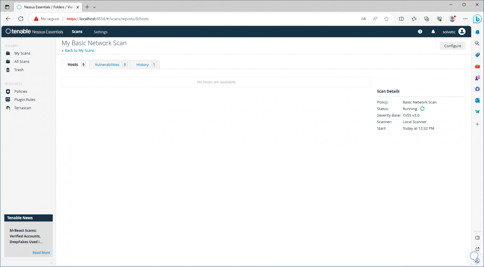 Se abrirá el navegador con la consola de Nessus: