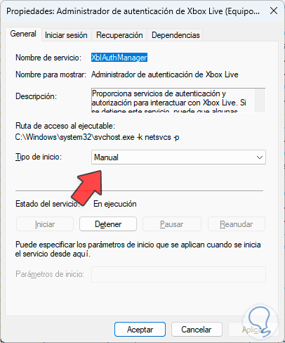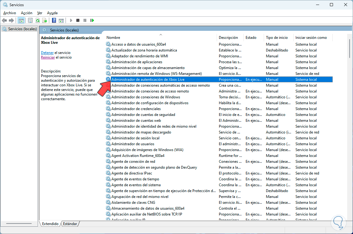En primer lugar, seleccionamos el servicio “Administrador de autenticación de Xbox Live”: