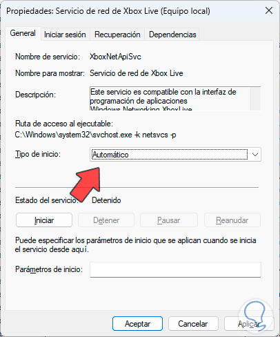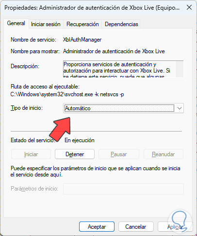 En “Tipo de inicio” establecemos la opción “Automático”: